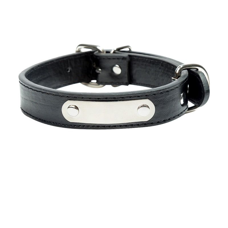 collier chien cuir noir gravé