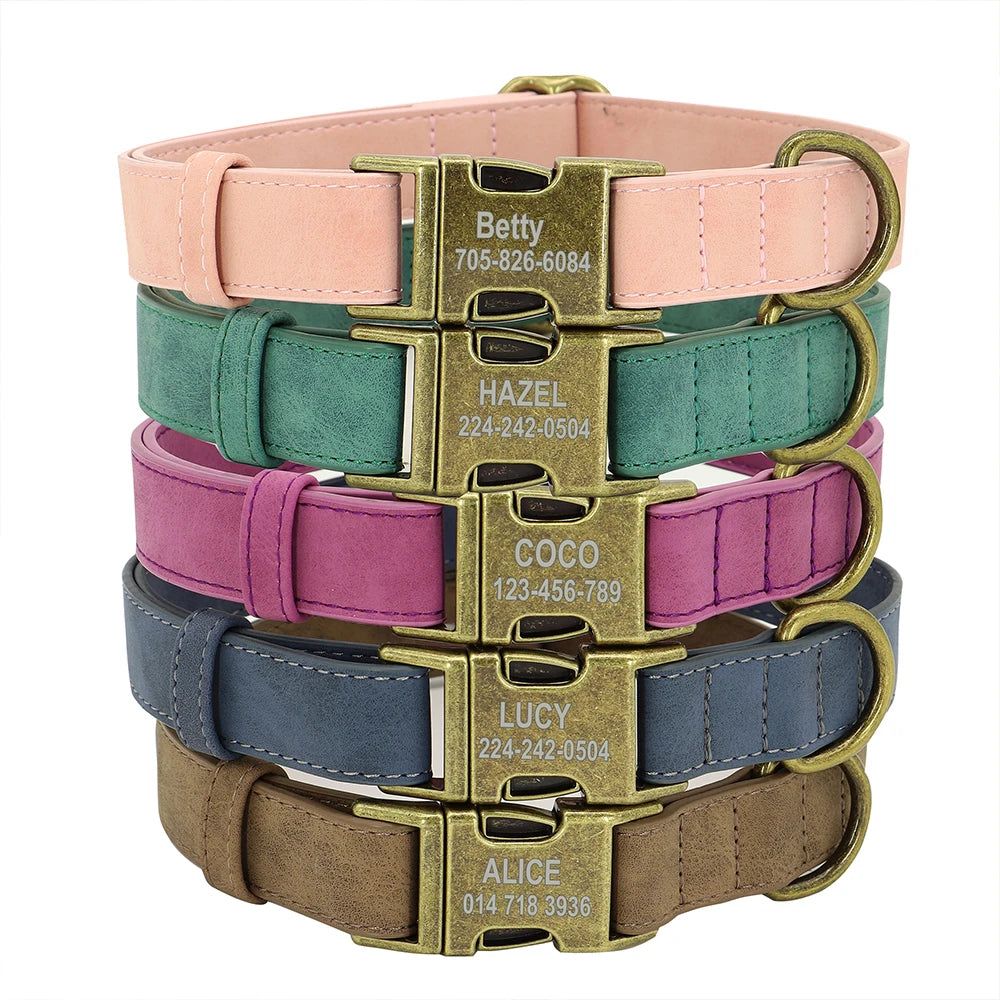 Tout ce dont vous avez besoin : Collier Chien Personnalisé – Cuir Rembourré – Or